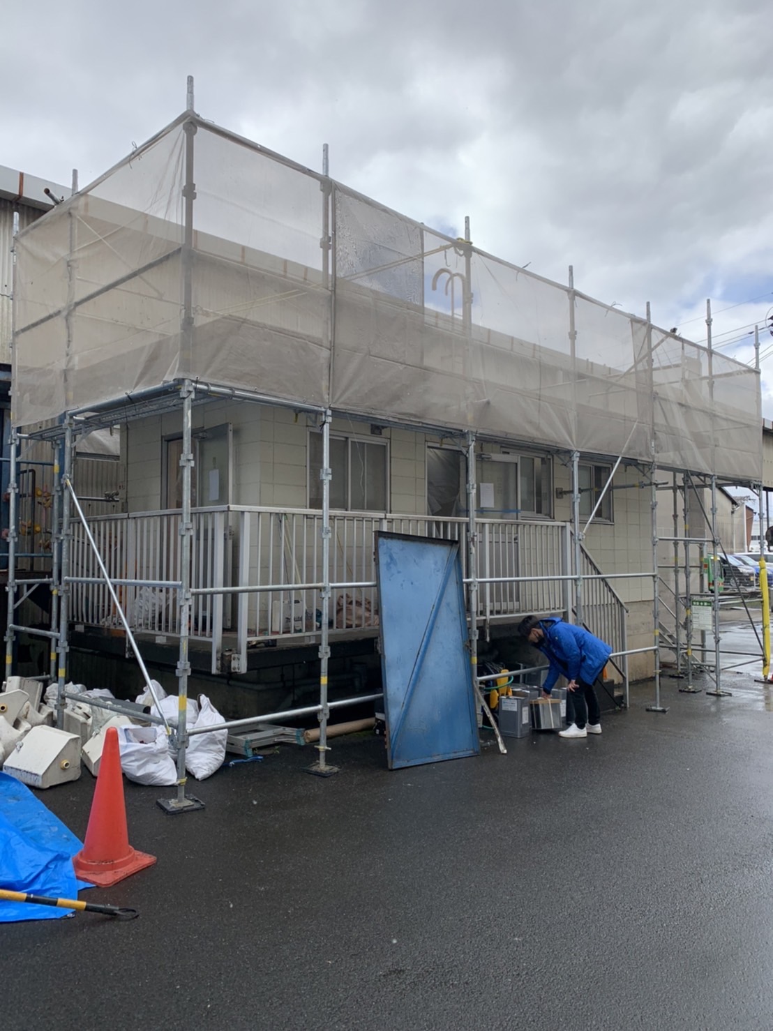足場で作業をされる職人様が